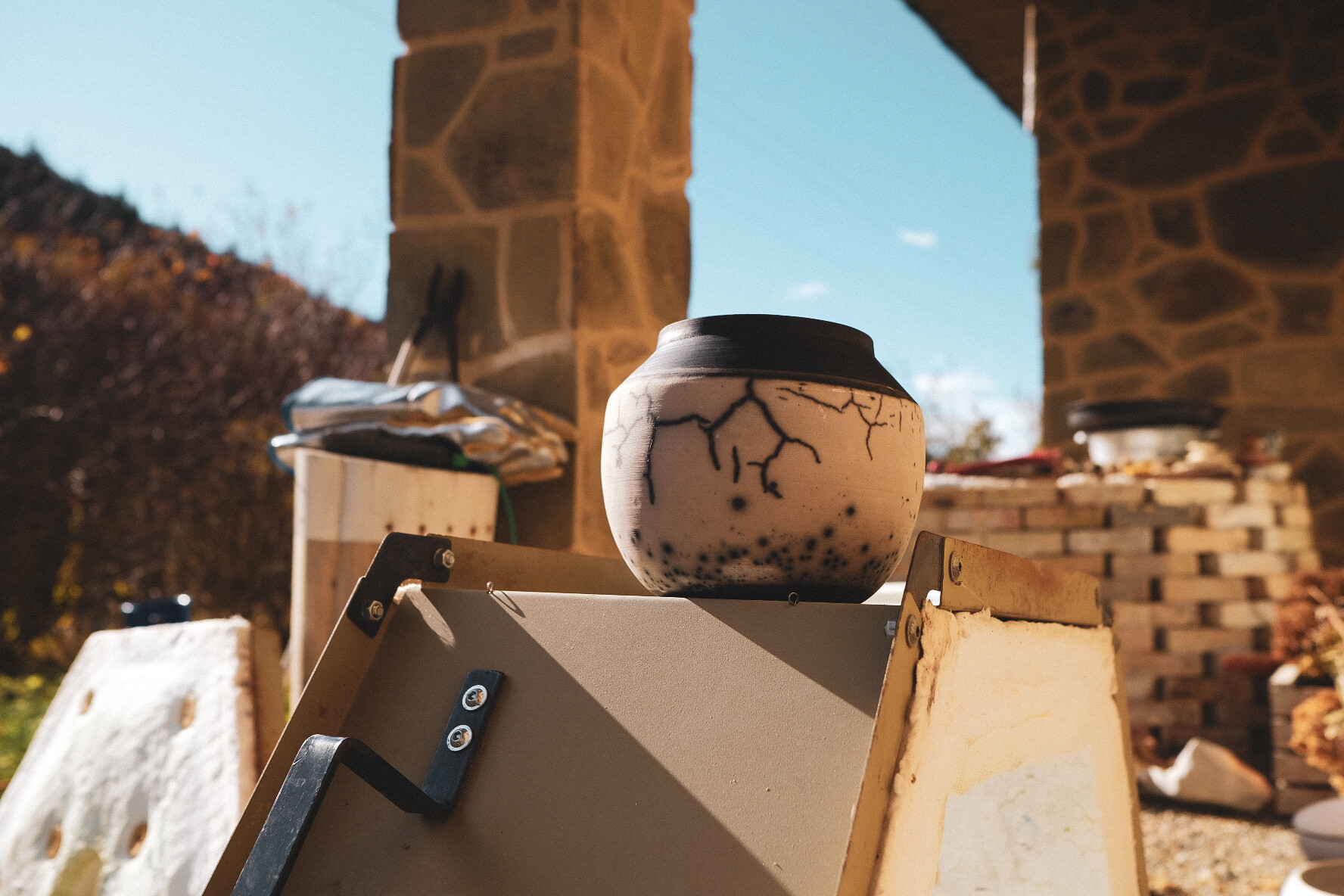 Intensywna praca przerywana była chwilami wypoczynku w domu nad pracownią. Październik żegnał się z nami cudowną, niemal letnią pogodą, więc możliwe były długie spacery na pobliskie wzgórza i do lasu. Można się było przy okazji zaopatrzyć w jakieś ingrediencje do saggaru, dotlenić i wyciszyć myśli. Takie trzy dni pozwalają tak zaplanować program warsztatów, żeby znalazł się czas na wszystko: zarówno na pracę jak i odpoczynek, czy pobycie tylko ze sobą. Pozwalają też pobyć razem, wymienić doświadczenia i historie. Dla nas to bezcenne spotkania i już cieszymy się na kolejne, a za te z serca dziękujemy.
